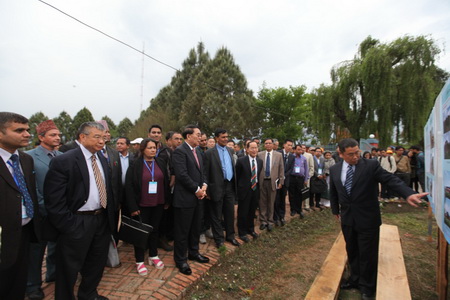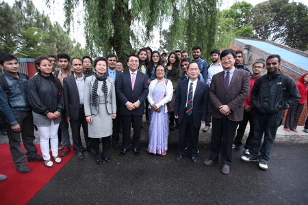 3月28日下午,在青藏高原所所长姚檀栋陪同下,中国科学院院长白春礼、国际合作局局长曹京华、中国科学院大学副校长王艳芬等一行22人访问了特里布文大学并参观了中国科学院加德满都科教中心(以下简称“加德满都科教中心”)。 特里布文大学常务校长特尔斯•拉贾•卡哈尼亚(Tirth Raj Khaniya)教授及主要校领导热情接待了中科院代表团,双方就推进加德满都科教中心建设和进一步的科教合作等进行了会谈。在会谈期间,双方领导首先回顾了中国科学院与特里布文大学前期的合作及其共建加德满都科教中心的主要历程。在听取姚檀栋所长关于“加德满都科教中心及第三极环境(TPE)国际计划主要进展”的汇报后,白春礼院长表示,在加德满都科教中心的努力下,中尼科学家密切合作,取得了重要的科学进展。中国科学院目前正在启动“一带一路”科技合作专项,我们将加大对TPE国际计划的支持,这将开启加德满都科教中心科学研究的新篇章。加德满都科教中心的教育计划为培养尼泊尔青年一代科技人才、推动双方持续合作创造了良好条件。特尔斯•拉贾•卡哈尼亚校长对中科院长期以来与特里布文大学的合作表示支持与感谢,并承诺将尽最大努力继续支持加德满都科教中心的发展。 随后,白春礼院长一行在特尔斯•拉贾•卡哈尼亚校长等尼方人员陪同下,参观了在该大学校园建设的的加德满都科教中心,青藏高原所副所长赵平介绍了加德满都科教中心基建的进展情况,并带领大家参观了基建现场及观测场。参观结束前,白春礼院长和特尔斯•拉贾•卡哈尼亚校长共同为“中国科学院加德满都科教中心”揭牌并与中国科学院大学依托中心招收的首批尼泊尔籍硕士班学生亲切见面,欢迎他们来华留学,并鼓励他们利用好此次机会成为栋梁之才。
