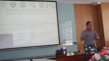 5月31日,应青藏高原地球科学卓越创新中心、大陆碰撞与高原隆升重点实验室颜茂都研究员邀请,加州理工大学 (Caltech) Joseph L. Kirschvink 教授以及加州大学伯克利分校(UC Berkeley)Nicholas Swanson-Hysell助理教授来青藏高原所访问交流。 在颜茂都研究员陪同下,Kirschvink 教授及Swanson-Hysell博士首先参观了大陆碰撞与高原隆升重点实验室古地磁室,就超导磁力仪-RAPID 系统的运行、管理和可能存在的问题等诸多方面交换了意见,并就今后古地磁实验室的建设和发展提供了许多建设性意见。随后,Kirschvink 教授作了题为“A Psychophysical and Neuro-Engineering Approach to Human Magnetoreception”和“Birds, Bees, and Animal magnetism: The research for geomagnetic Sense in Animals”的学术报告。在报告中,Kirschvink 教授深入浅出的从许多生物及人类体具有生物磁铁矿颗粒,能够利用地球磁场导航这一现状谈起,主要介绍了围绕这些生物(包括人类)的“磁接收器”开展多方面的实验和验证及取得的一些新的进展。青藏高原所及其它兄弟单位众多师生在现场聆听了本次精彩报告,并在会后与Kirschvink教授展开了热烈交流。 Kirschvink教授是加州理工大学“Nico and Marilyn Van Wingen”地球生物学教授,国际著名古地磁学家和生物地磁学家,也是许多原始科学概念的倡导人。其主要原创性科学贡献包括首个预测和发现基于磁铁矿的动物磁感体和受体,发现磁细菌化石及指南趋磁细菌,首个提出前寒武纪冰期的“雪球事件”假说,寒武纪生物大爆发、真极移和碳循环,生物矿化大统一理论,以及火星胚种论等。Kirschvink教授获得过美国地球物理学会“William Gilbert”奖章,加州理工大学“Richard P. Feynman Prize”等。 Nicholas Swanson-Hysell博士毕业于美国普林斯顿大学,目前系加州大学伯克利分校地球与行星科学系助理教授,主要致力于古大陆重建、地球磁场演化以及地球历史演化等方面的研究,已发表论文近20篇。