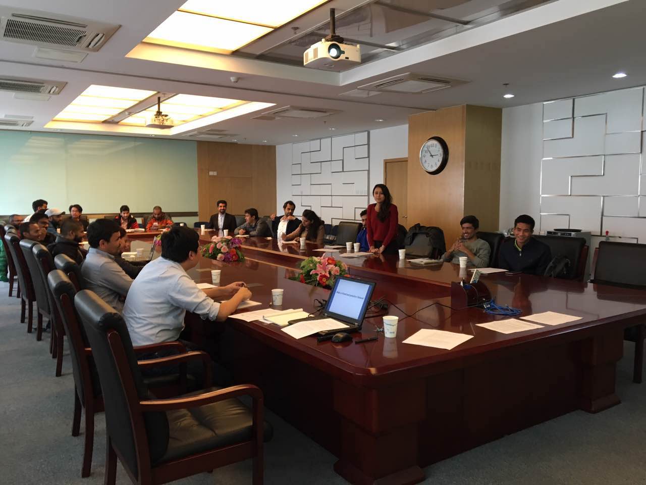 首先,研究生部负责留学生工作的刘雯雯老师对中科院和青藏高原所作了简单介绍,让留学生对两者的关系和基本概况有了初步了解。随后,她就本所研究生培养方案作了详尽解读,使每一位留学生清楚硕士和博士的培养目标和不同阶段要求。最后,她介绍了留学生管理规定,并作范例讲解。