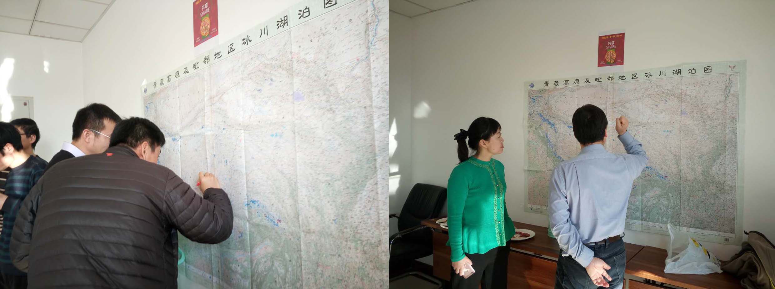 作为发起人之一,所青促会小组现任组长张强弓副研究员简要介绍了启动活动的初衷。环境变化与地表过程重点实验室副主任阳坤研究员对共餐交流的形式表示充分肯定,并对数据共享和高原陆表环境研究谈了自己的看法。之后的进餐环节,大家针对各自管理的野外气象观测数据进行了交流共享,并在地图上对气象站大致位置进行了标注。在短短一个小时里,大家分享美食、共享数据、交流思想、畅想未来,并表示将继续支持【午食三客】活动,营造良好的学术自由交流氛围。