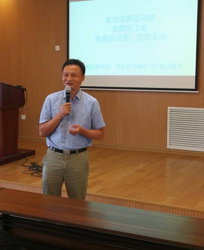 董伟锋书记致辞 在观影活动结束后,影片总导演曾海若先生亲临现场,与大家一起分享影片拍摄的背景、期间众多经历以及未来的一些拍摄想法。参会科研人员从各自角度与导演直接“对话”,提出了在将来的影片拍摄中进一步增加自然科学元素、扩大公众科普认知度、提高拍摄手段等想法。会后,曾海若先生与部分一线科研人员围绕第二次青藏高原综合考察活动中的视频拍摄及科普宣传等进行了深入交流,双方均表达了一致的合作意向。