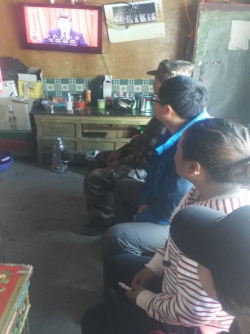 左图:拉萨部党员观看学习十九大报告