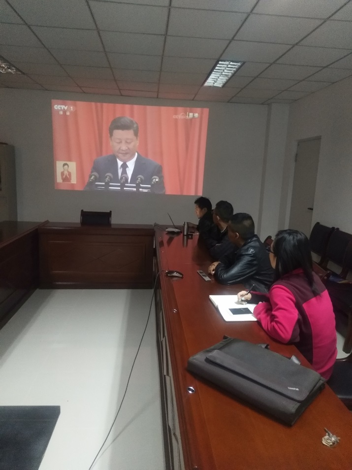 2017年10月18日上午9时,中国共产党第十九次全国代表大会开幕式在人民大会堂隆重举行,习近平总书记代表第十八届中央委员会向党的十九大作报告。为了及时学习领会十九大精神,青藏高原所党委组织在京党委委员、纪委委员、党支部书记、中层以上党员干部和部分职工、学生在北京部集中观看学习了十九大报告。拉萨部、加德满都科教中心、珠峰站的部分在站党员及入党积极分子也进行了观看学习。