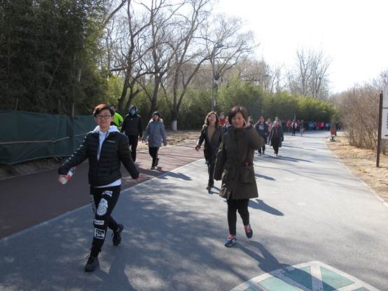 初春的奥森公园已呈现出大地复苏、湖水解冻的春天景象。大家陆续来到奥森公园南门,环绕塑胶跑道进行了3-5公里“健步走”。