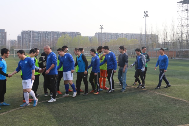 董伟锋和吴薇共同为比赛开球。开场10分钟,职工队王君波率先破门。之后,学生队在前场获得一次机会,李博文打进一球,将比分扳平。第25分钟,职工队依靠陈生生的进球又取得领先,不过随后便被学生队陈毅的一脚远射追平至2-2。随后的比赛渐渐被职工队所掌控,史仁灯攻入第三球后,陈生生梅开二度再入一球,上半场比分4-2。中场休息后易边再战,下半场第30分钟,由学生队陈炽皓在门前抢点破门,比分变为4-3。之后的比赛,双方你来我往,制造了不少有威胁的进攻,学生队守门员Ahsan Ali表现神勇,多次用双手将皮球托出,将比赛推向高潮。最终,职工队以4-3微弱优势获得胜利。
