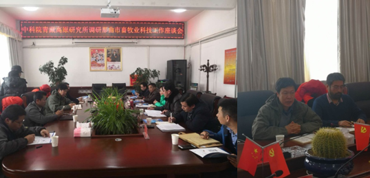 调研期间,陈发虎院士一行还与那曲市科技局、农牧局、那曲市国家级农业示范园区、那曲市草原站等单位领导进行了座谈,科研教育处处长汪亚峰介绍了青藏所概况、第二次青藏高原综合科学考察背景,那曲市科学技术局党组书记姜措、那曲市国家级农业示范园区主任兼那曲羌塘牧业发展有限公司董事长郭红宝、那曲市科学技术局副局长王宝山、那曲市农牧局副调研员李春来等对那曲市科技创新和农牧业发展做了总体情况介绍,双方就那曲生态环境研究和保护、农牧业可持续发展等交换了意见,同时还讨论了建立更加广泛、长期的所地科研合作关系。