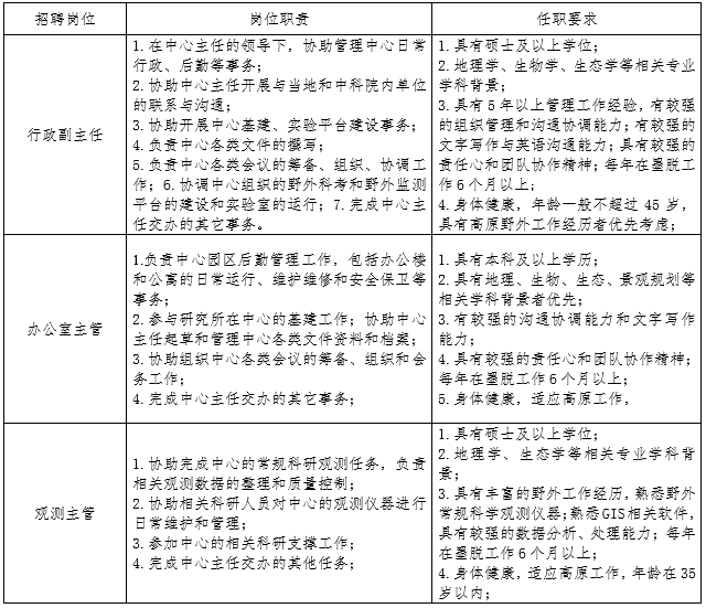 为进一步强化我国对藏东南地区生态系统的监测,为科学研究提供支撑,助力西藏构建国家生态安全屏障,从整体上认知和研究青藏高原。中国科学院墨脱地球景观与地球系统综合观测研究中心拟招聘工作人员3名: