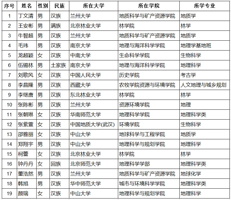 2019年青藏所大学生夏令营营员选拔结果(第一批)