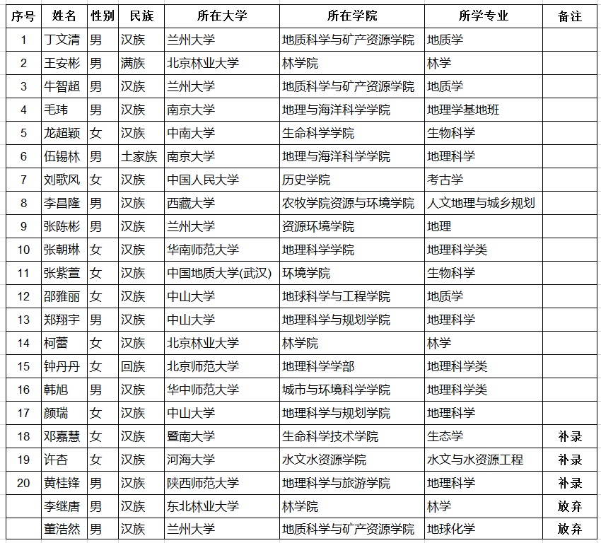 2019年青藏所大学生夏令营营员选拔结果(第二批)