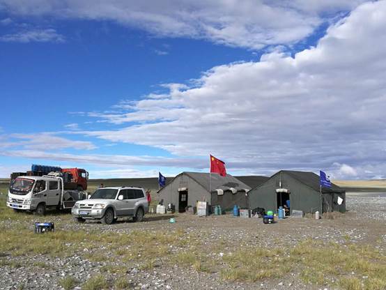 国旗飘扬在藏北高原科考营地