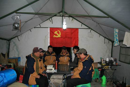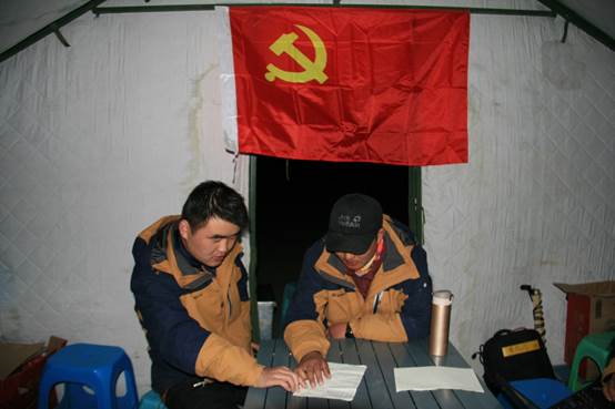 队员们一致表示要在科考活动中牢记自己是一名党员,时刻做到吃苦在前,享受在后;科考活动中挤出时间学习党的有关理论、学习关于本次考察的重要精神,将提高自己的党性修养和圆满完成科考任务有机结合起来。特别是几位青年学生,也都信心满满地表示要在科考的大熔炉中锻炼自己,不光是学习锻炼科考本领,更重要的是通过与平日学习生活方式完全不一样的真正的野外考察,磨炼自己的意志,坚定自己加入党组织的决心,并随时准备在科考过程中“火线”加入党组织,为二次科考奉献自己的青春和智慧。队员们一致认为90后新生力量必将成为这次科考的生力军,也必将在此次科考中得到充分的锻炼。