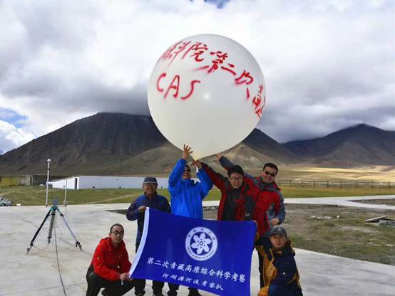 在海拔4270米的中科院阿里荒漠环境综合观测研究站,在美丽的班公错湖畔,又一个带着中科院第二次青藏科考字样的探空气球升空。河湖源河流考察队气象组每隔4个小时将放出一个气球,此次科考主要是通过气球带着无线电仪器进行探空实验,采集各大气层结不同高度的气象要素,同时也收集河湖源上游气象站的观测资料,以分析研究青藏高原本身的天气气候特征及其对周边地区的影响规律。