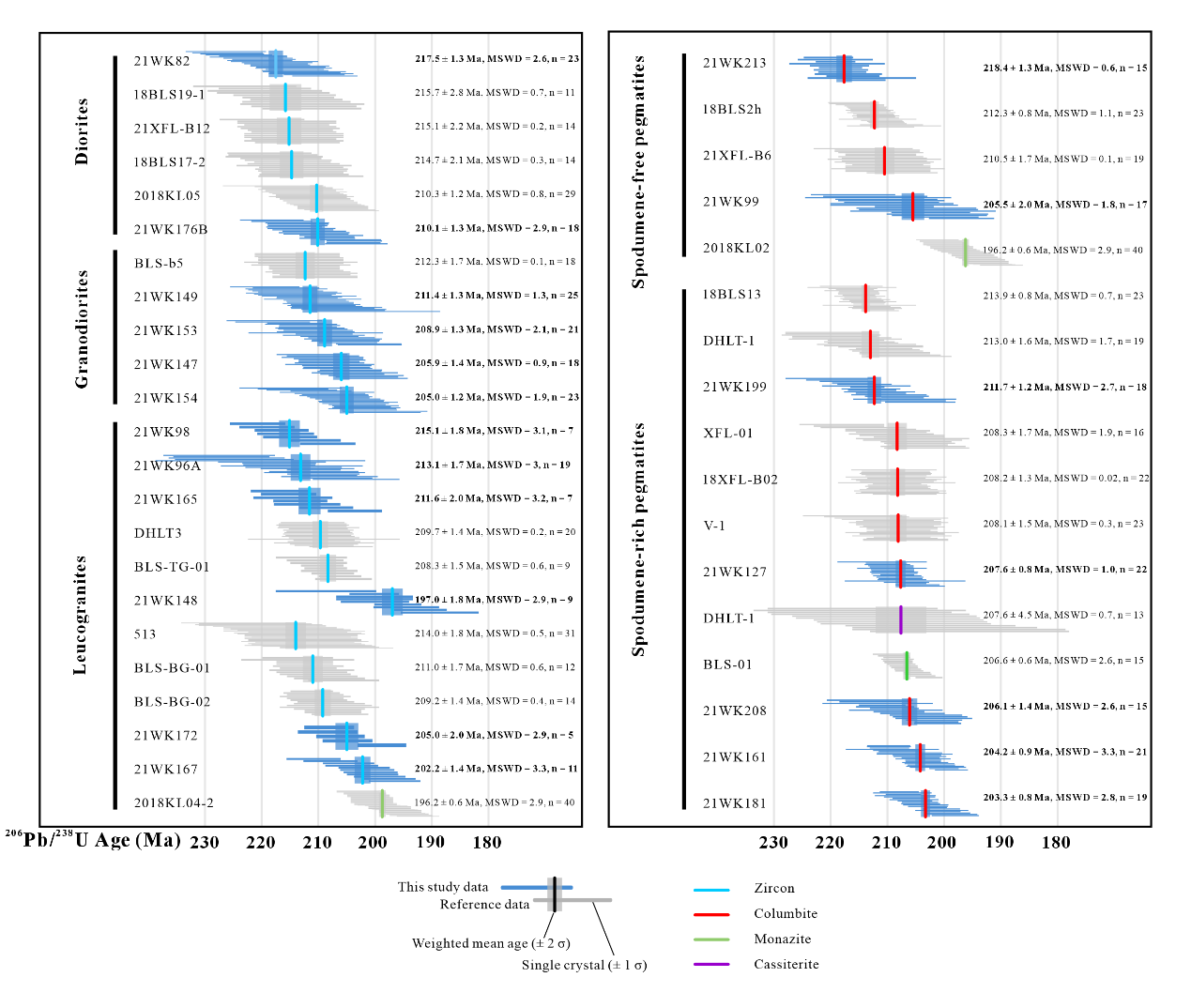 图2. 岩浆岩与伟晶岩的高精度年代学