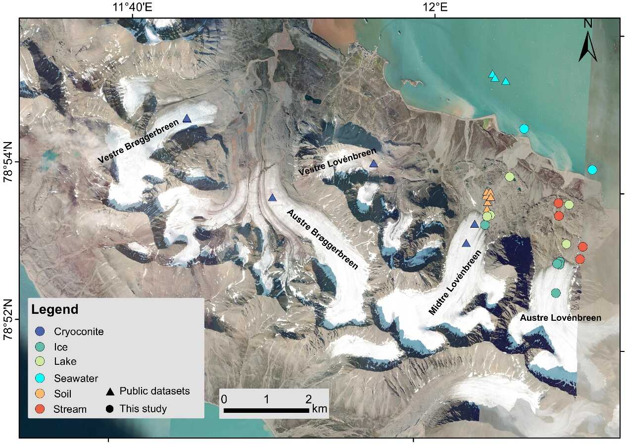 全球气候变暖,冰川加速消融,释放出的微生物能否在河流、土壤乃至海洋中“安家落户”,一直是科学家关注的焦点。近日,中国科学院青藏高原研究所环境变化与多圈层过程团队刘勇勤研究员等通过对挪威斯瓦尔巴群岛冰川-冰川前缘-峡湾连续体的系统研究(图1),揭示了冰川微生物在向海洋传播过程中的“过滤”机制。