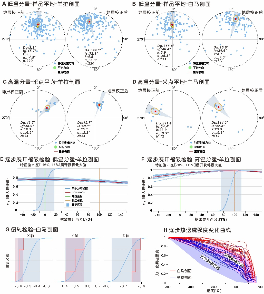 图2 古地磁方向统计及剩磁稳定性检验