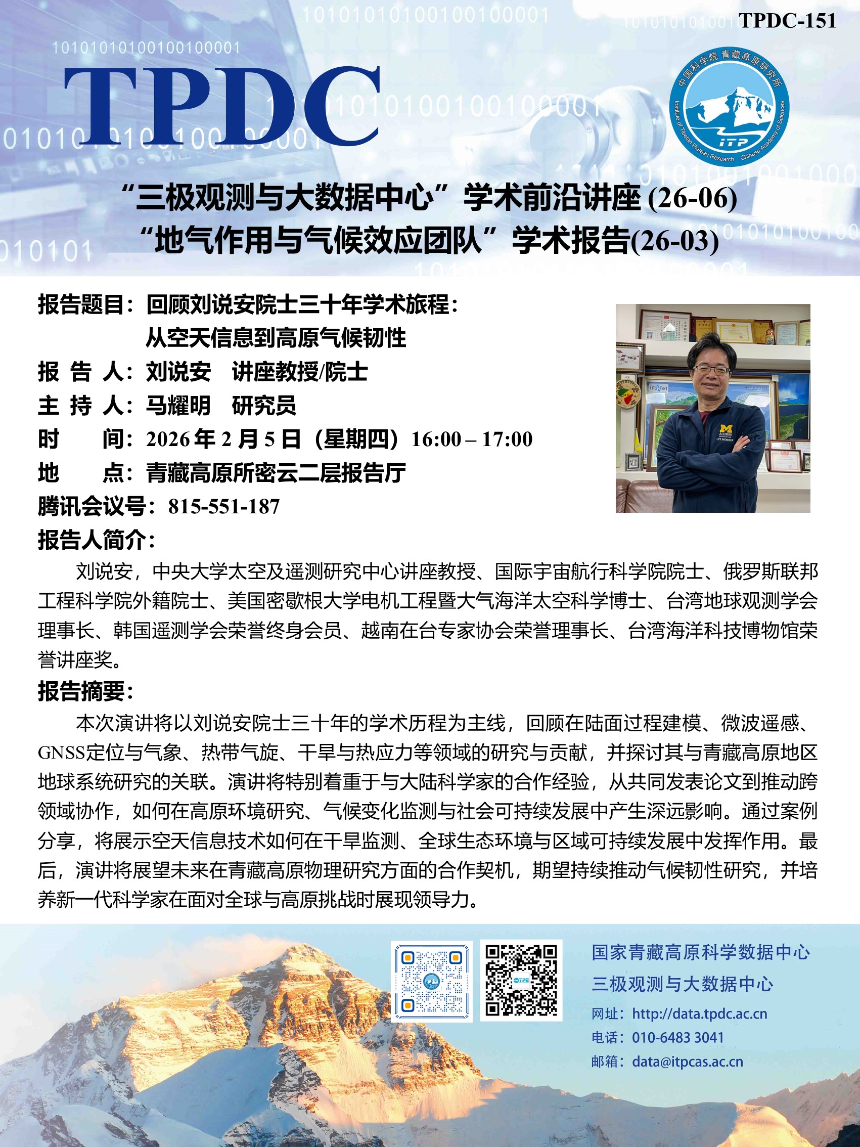 报告题目:回顾刘说安院士三十年学术旅程:从空天信息到高原气候韧性