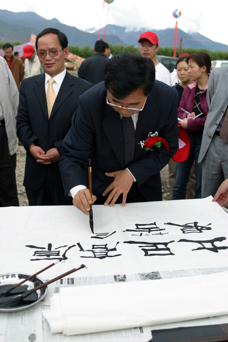 仪式结束后,自治区及中科院领导还听取了姚檀栋所长的工作汇报。布穷、白春礼分别用藏、汉文题词“立足高原、艰苦创业”。